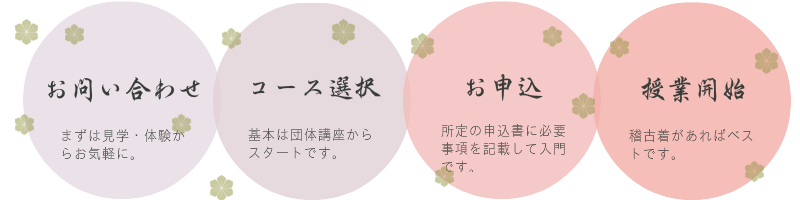 | 4回 (週1回) 毎週○曜日 (上石神井・つつじヶ丘教室) 稽古時間:30分程度 |